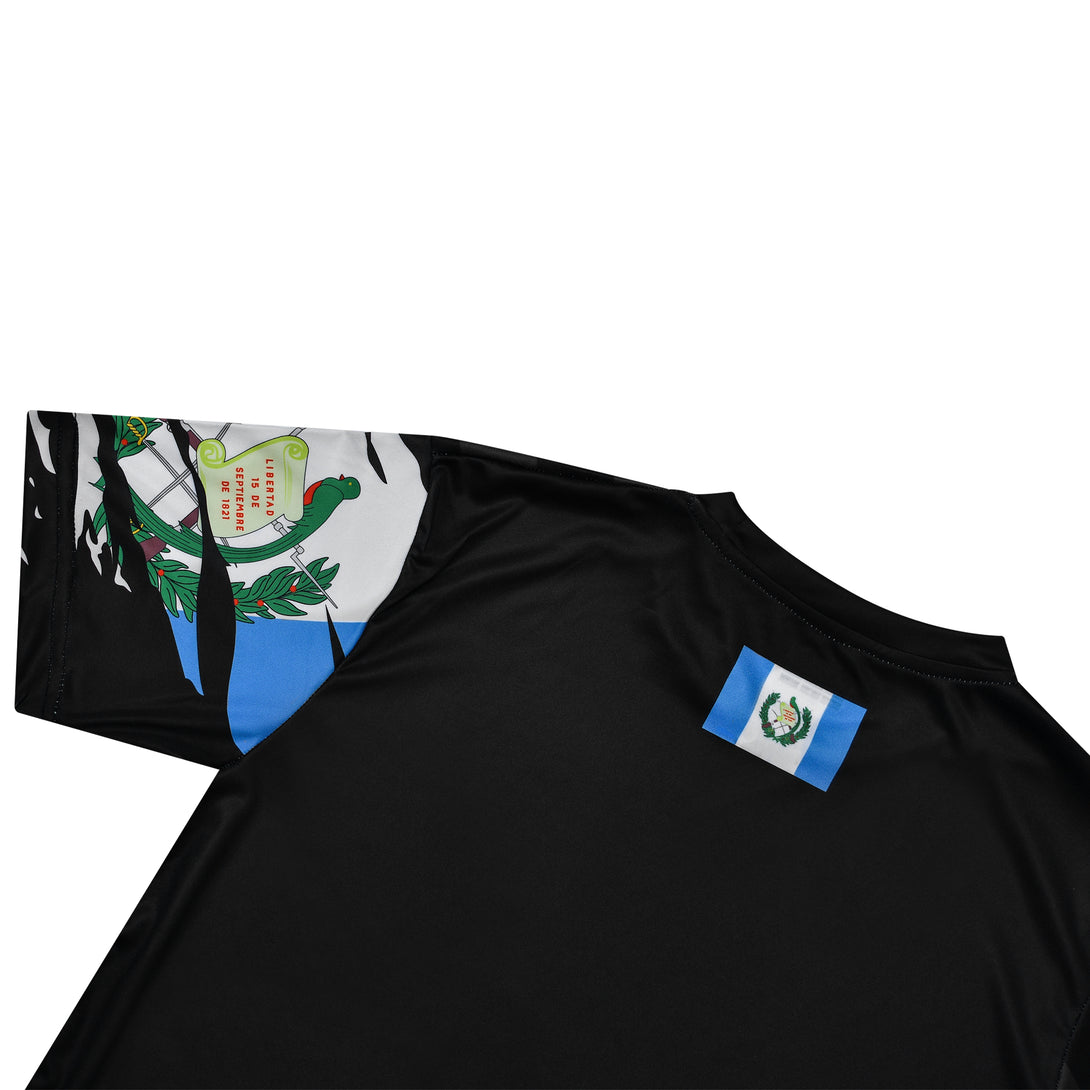 Represent your national pride with this soccer jersey featuring the colors and emblems of Guatemala.