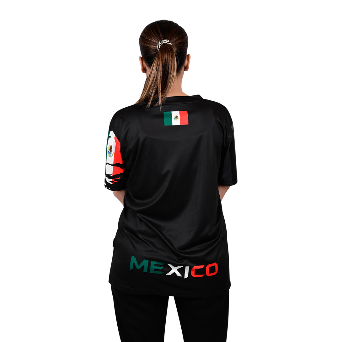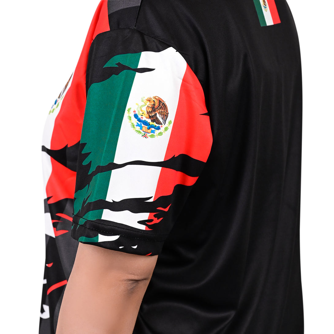 The bold design features the Mexican flag colors with vivid graphics on the front, back, and sleeves, symbolizing national pride in every detail. With its perfect athletic fit and soft feel, this jersey is built for performance while showcasing your love for Mexico’s football heritage.