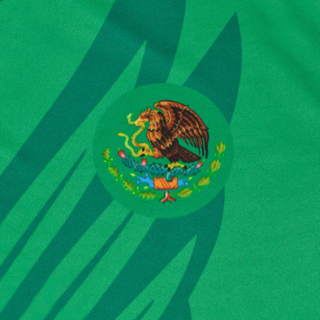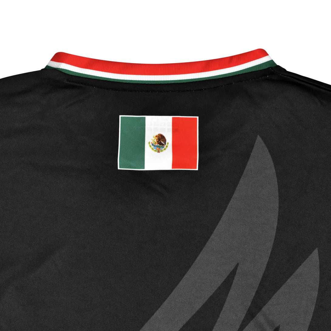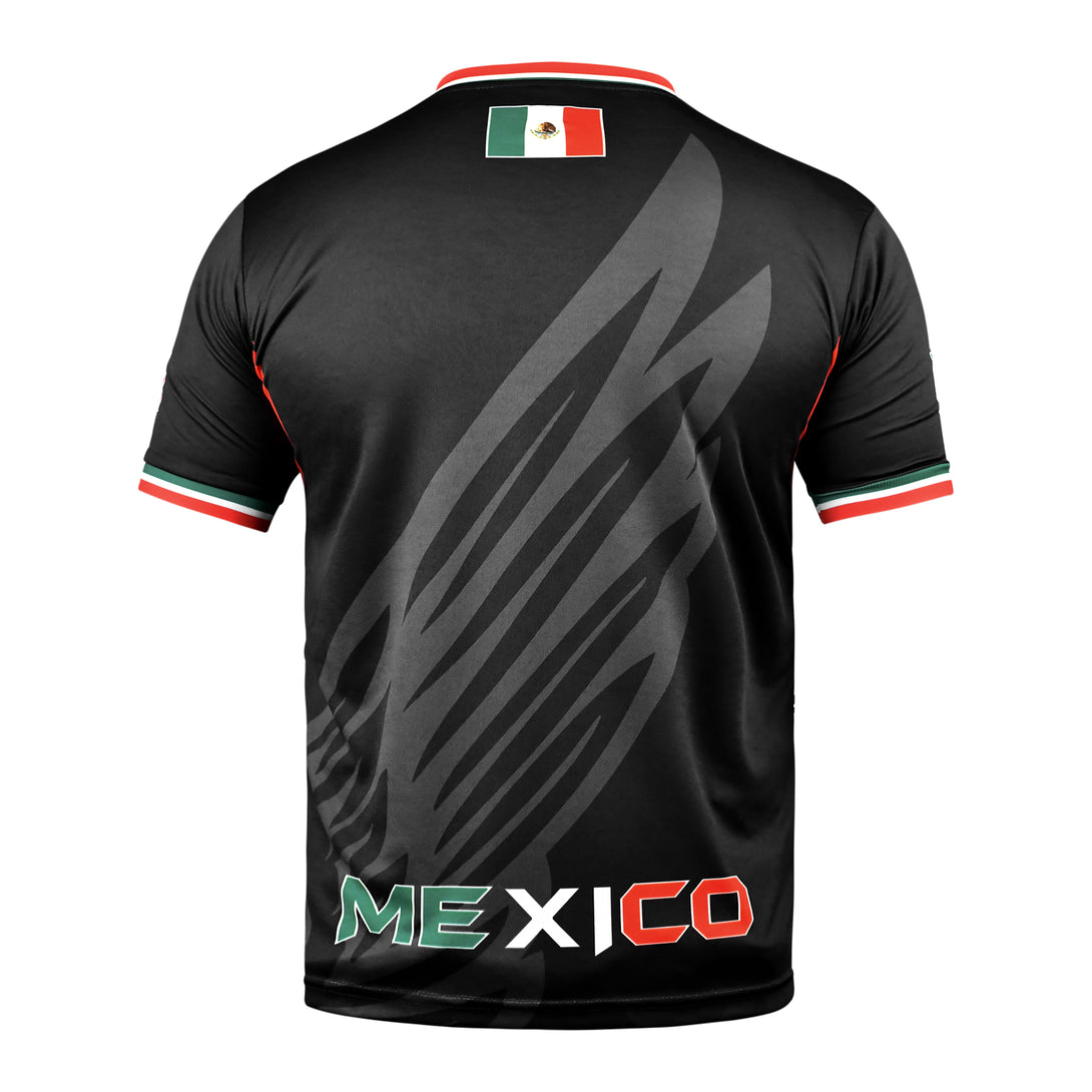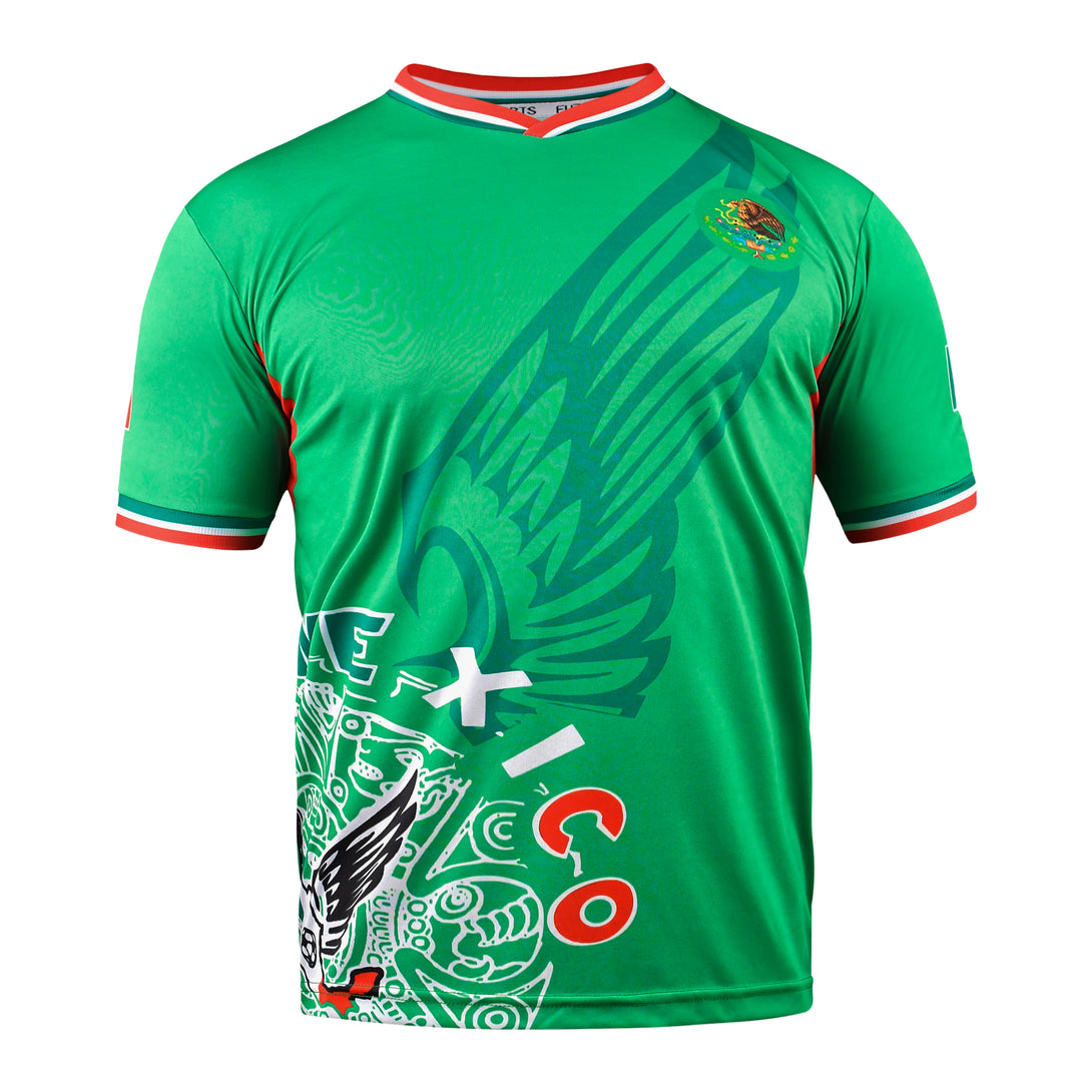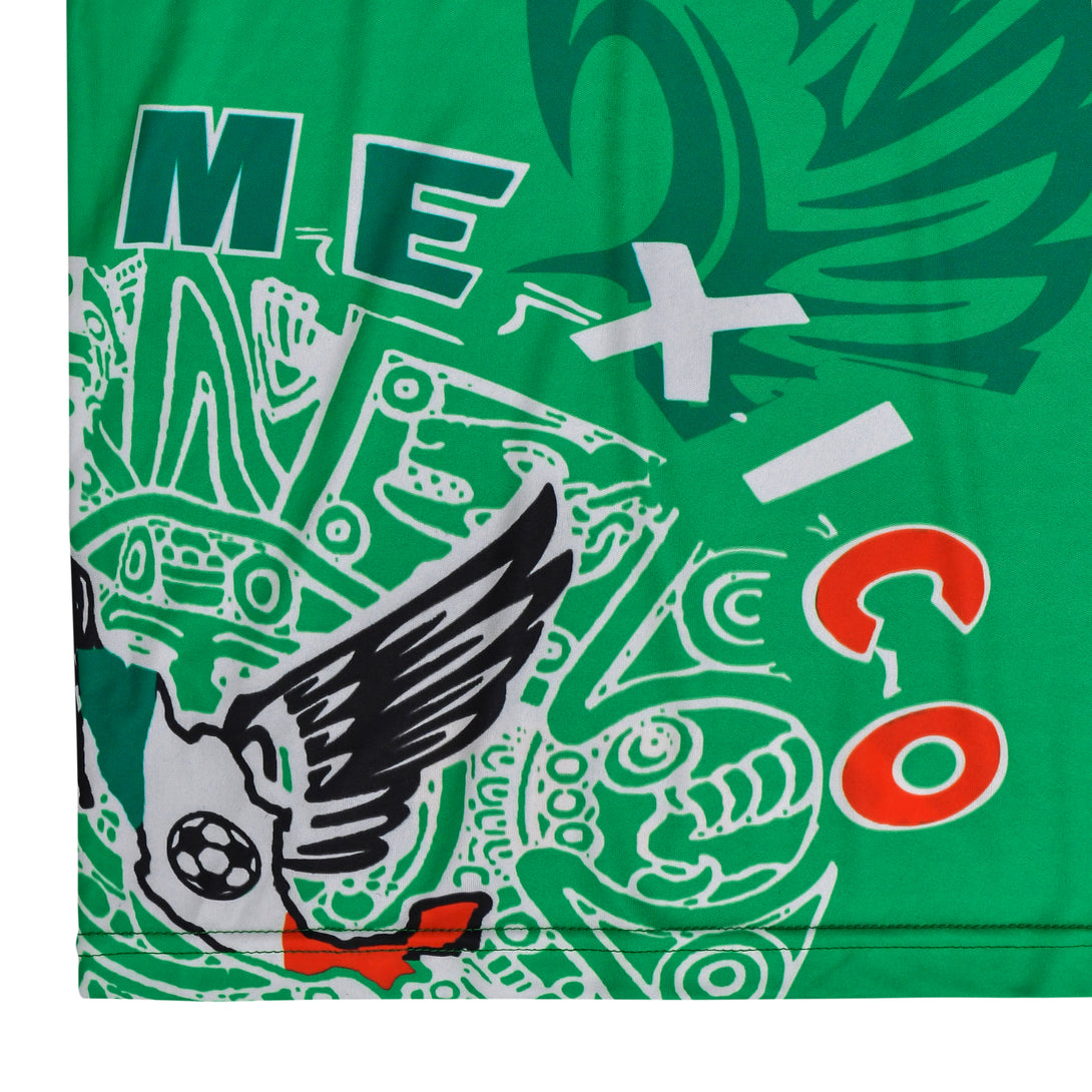 Bold Mexican Design: Featuring vivid prints of the Mexican flag and national crest, the jersey proudly represents Mexico’s heritage and love for football.