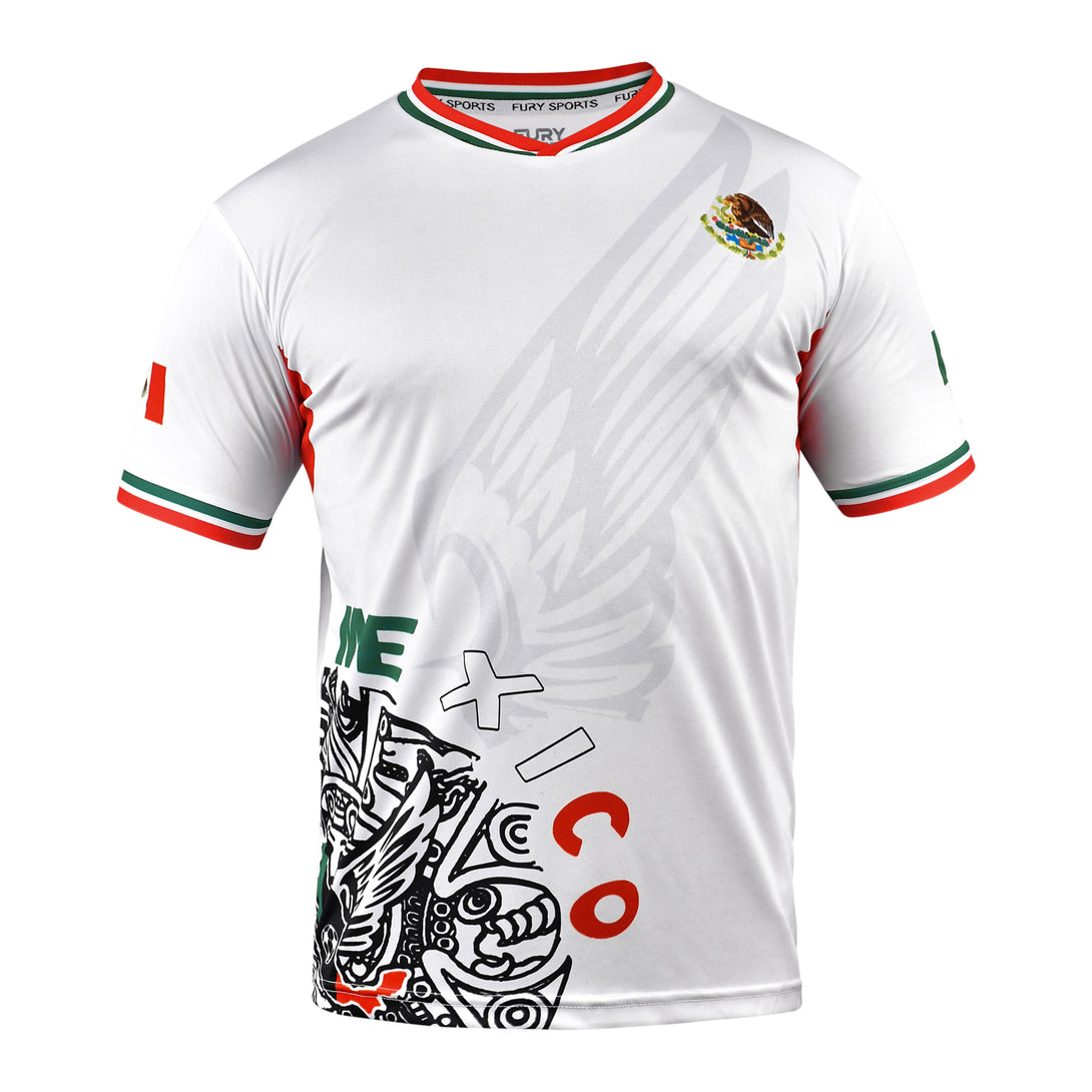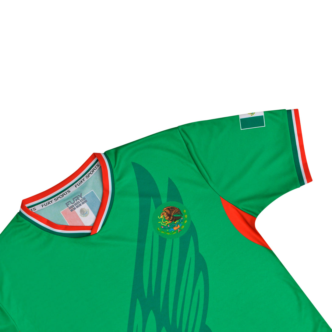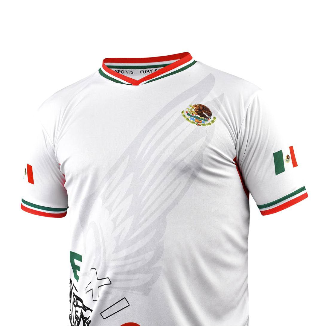 Fury Mexico Soccer Jersey V Neck Ripped Flag Design - Unisex