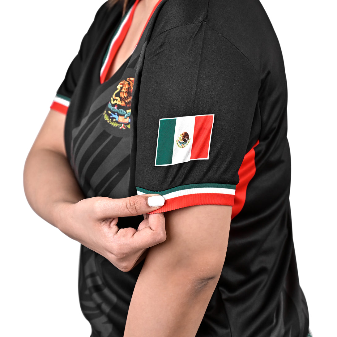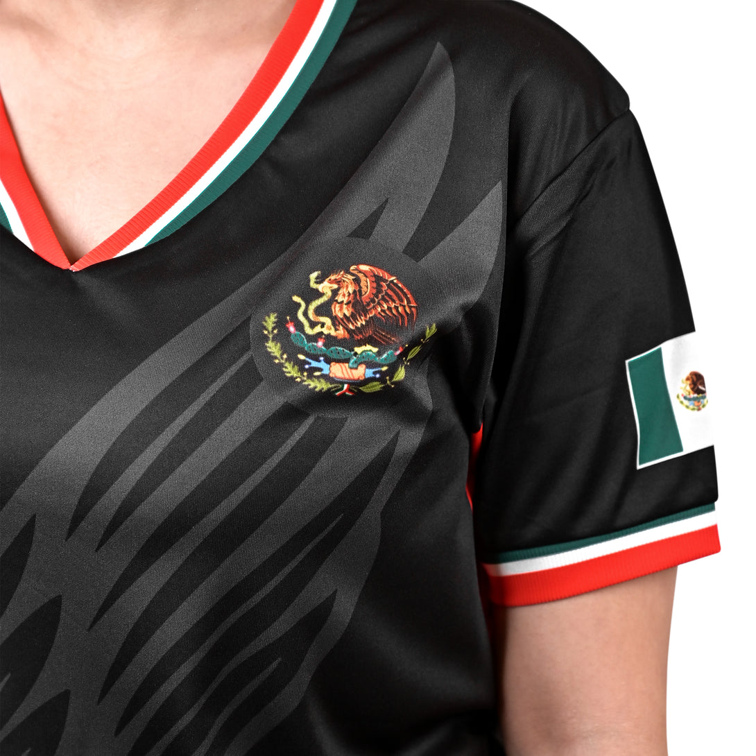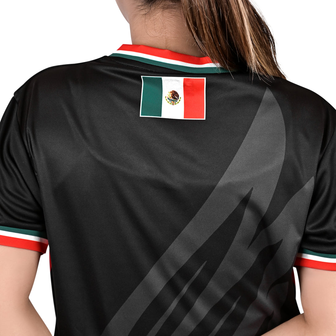 Fury Mexico Soccer Jersey -v- Neck Ripped Flag Design Black White and Green - Women