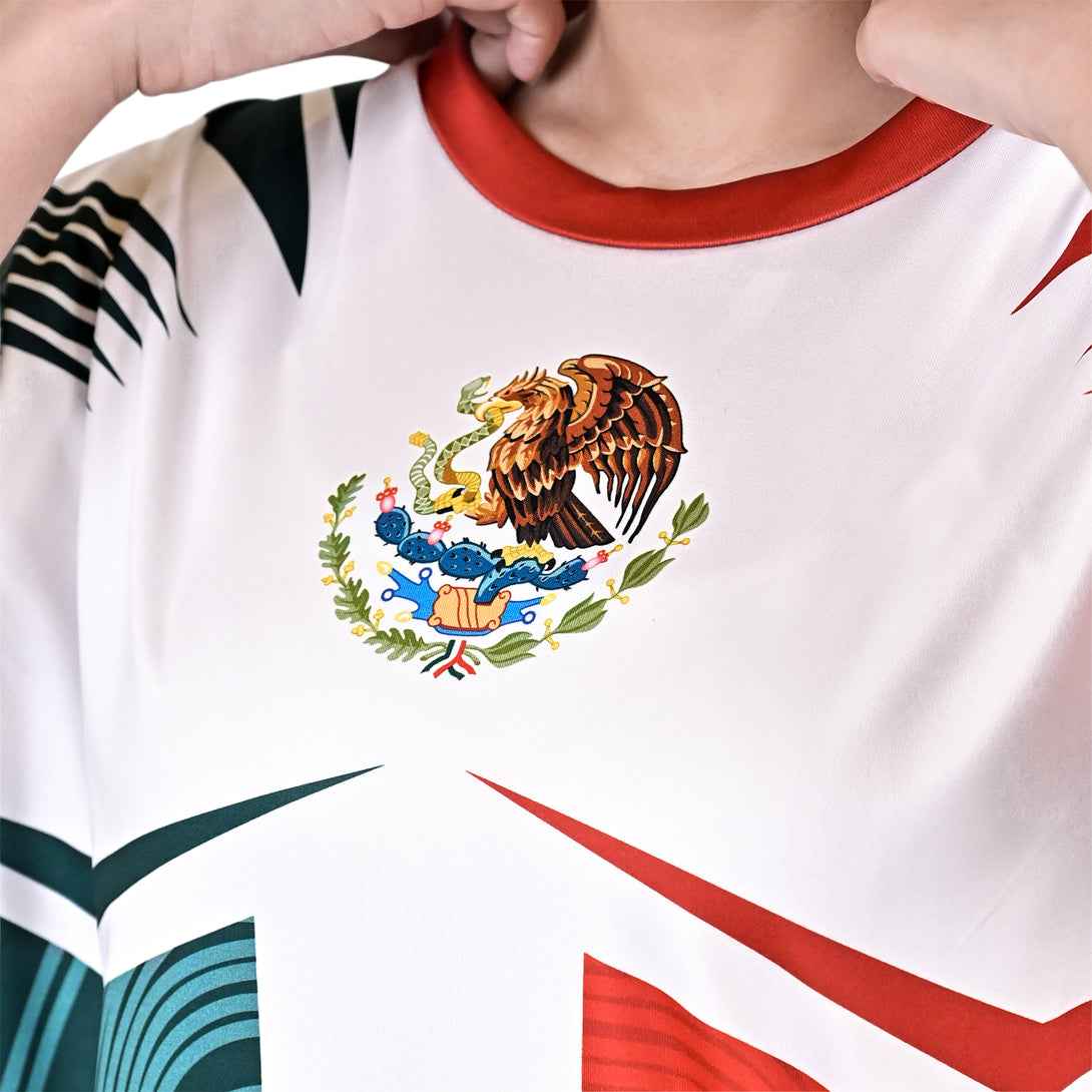 🎨 Bold Flag-Inspired Design – Features Mexico’s iconic green, white, and red vertical stripes with the national crest at the center, creating a striking patriotic look.