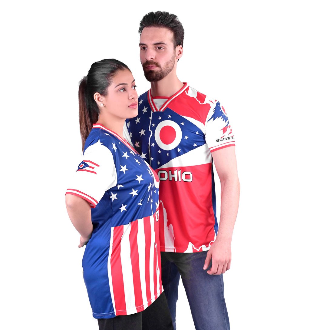 🌟 Bold Ohio Pride Design – Features the vibrant Ohio state flag design with patriotic accents and “Ohio” detailing across the jersey.